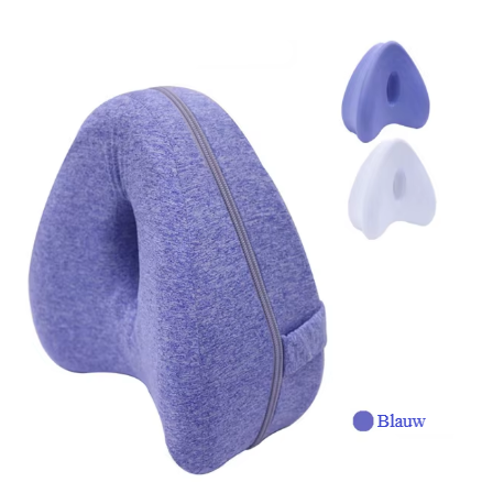 - Speciaal ontworpen voor je lichaam: Waar gewone kussens verschuiven en onvoldoende ondersteuning bieden, past het speciale steunkussen perfect tussen je benen.