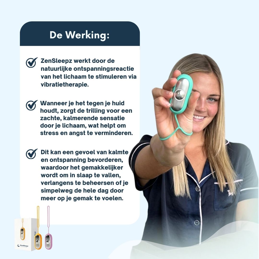 Diana's ZenSleepz Pulse is een draagbaar ontspanningsapparaat dat natuurlijke vibraties gebruikt om stress en angst te verminderen, de slaapkwaliteit te verbeteren, en algehele ontspanning te bevorderen. Het apparaat is compact, draadloos, en eenvoudig te gebruiken, waar en wanneer je maar wilt.